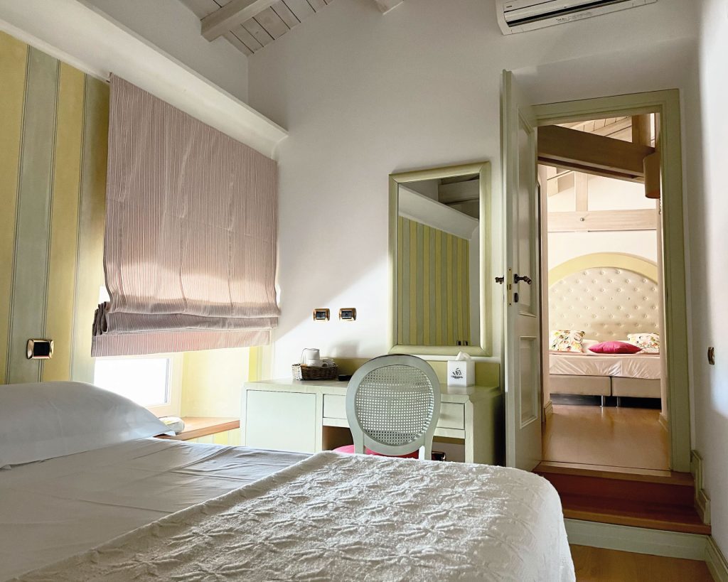 Our Superior room is a perfect blend of timeless elegance and modern comfort. With refined spaces and thoughtful details, this room offers everything you need for a pleasant and relaxing stay at Villa Euchelia.